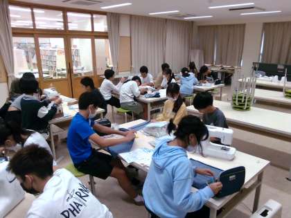 今日は、家庭科の学習でティッシュケースを作りました。子供たちは、きれいなミシン縫いができるように設計図を確認したり、友達と協力したりしながら学習に取り組みました。