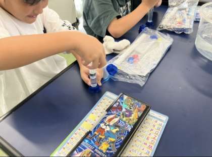 理科では、空気と水を同時に注射器に閉じ込めた状態でピストンを押すとどうなるかを調べました。これまでに学習したこととつなげながら、起こった事象について考えました。