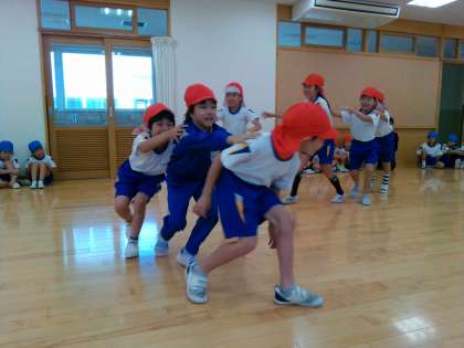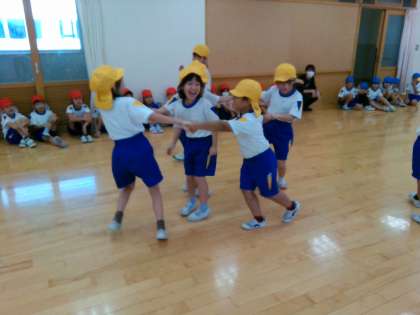 体育科「遊園地へゴー」の学習では、遊園地の乗り物になりきってつくった表現を発表しました。