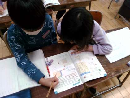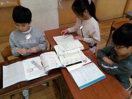 算数科では、今までにならった九九を組み合わせたり、見付けたきまりを活用したりして、九九の構成について考えています。