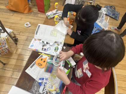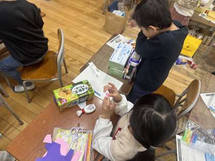 図画工作科の学習では、自分の大切なものを入れることができる「大せつボックス」を作りました。「リボンをつけて飾ろうかな」「開いたときに楽しい気持ちになれるようにどんぐりを付けよう」など、工夫を凝らして作ることができました。