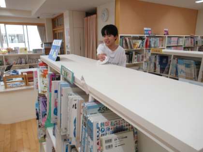 今日は、よごれに合ったそうじの仕方を学習し、校内の清掃に取り組みました。棚の上や窓等、ほこりやよごれが目立つ箇所を探して丁寧に清掃する子供たちでした。