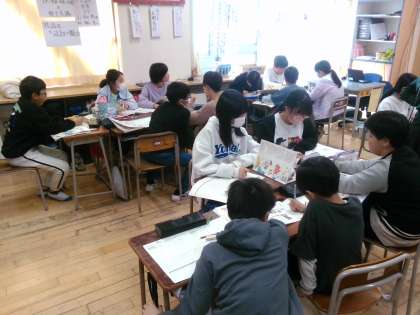 今日は、家庭科の学習で調理実習の計画を立てました。子供たちは、これまで学んだ「切る・茹でる・炒める」すべての工程がある料理について、見通しをもって計画を立てることができました。