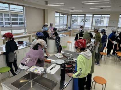 今日は、家庭科の学習で調理実習を行いました。子供たちは、計画通りに時間を配分したり、役割を分担したりして、協力して実習に取り組みました。