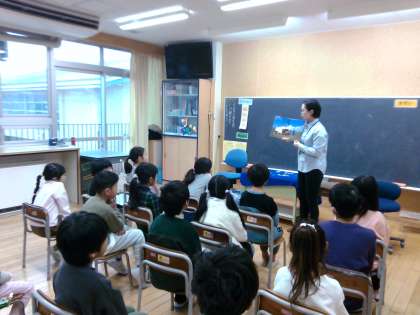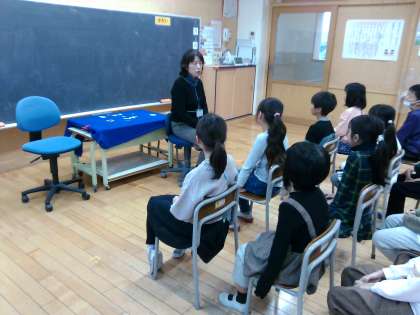 富山市立図書館の方に来ていただき、読み聞かせや本の紹介をしていただきました。耳で楽しむお話を聞いたり、初めて知るお話を紹介していただいたりして、さらに本への興味を深めました。富山市立図書館から貸していただいた本を手にとって読み、物語の世界を想像している姿も見られ、読書の幅を広げていました。