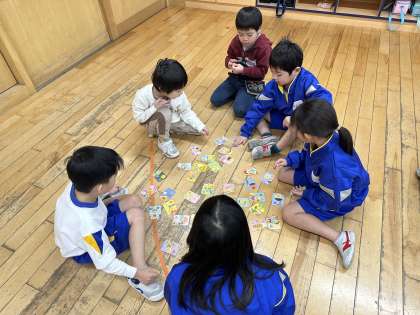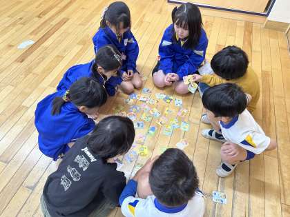 生活科の学習では、昔の遊びに親しんでいます。今日は「いぬぼうカルタ」を楽しみました。