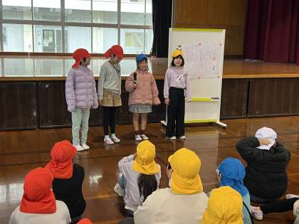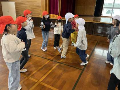 今日は2組主催の学年集会をしました。「だるまさんの1日(2年生の2学期バージョン)」「はないちもんめ」「トンネルおに」をして、楽しい集会になりました。