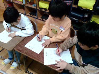 1月に行うチャレンジテストに向けて練習問題に取り組んでいます。取り組んだ後は、解き方や考え方を確かめながら、答え合わせをしています。「分かる」「できる」が増え、自信をもって取り組む姿が広がっています。