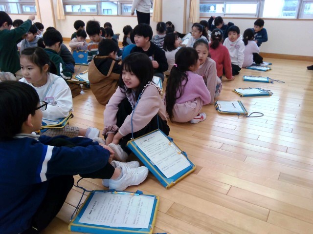 3学期最初の学年集会をしました。学年目標の「にこにこ」について考えて、「困っている人がいたら優しく声をかけたい」「みんなと協力して勉強をしたい」等と目当てを聴き合いました。集会の最後には、「冬休みビンゴカード」に取り組み、「今年もよろしくお願いします」と挨拶をしました、