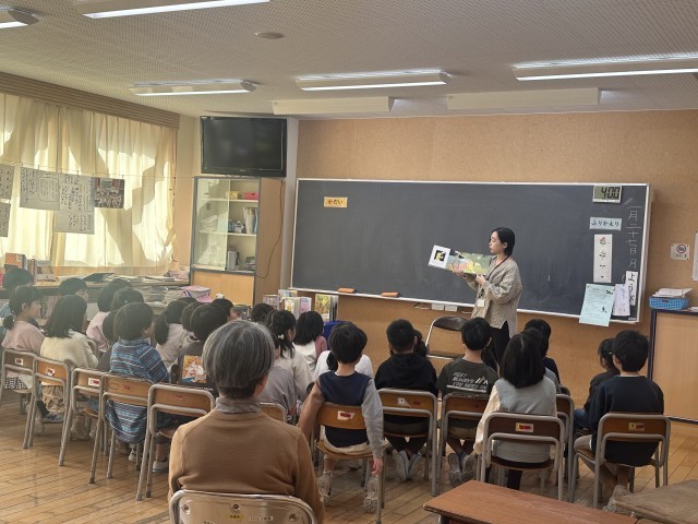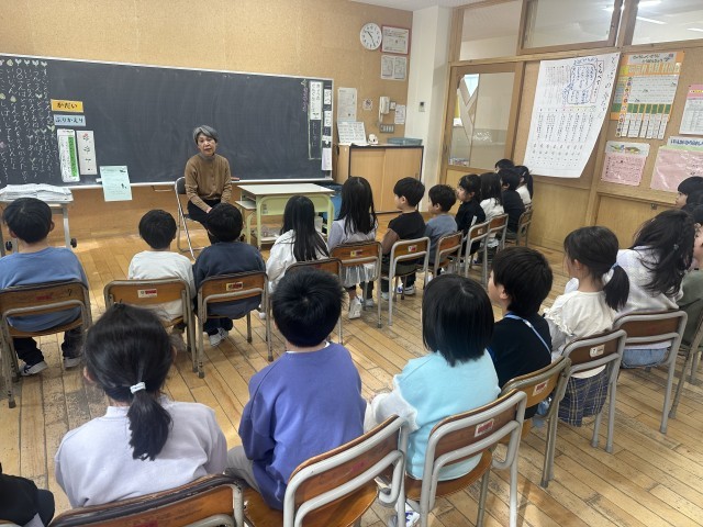 今日の図書館訪問では、市立図書館から講師の方をお招きして、耳で聴いて楽しむお話や「だんだんかわるもの」「いろんなおうち」等のテーマに沿った絵本や物語を紹介していただきました。子供たちは興味津々で読み聞かせの時間を楽しみました。