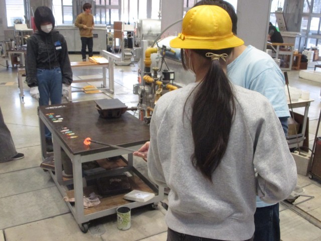 今日は、富山市ガラス工房にて卒業制作を行いました。自分で決めた形や色・模様のペーパーウエイトの仕上がりを想像しながら一生懸命制作し、楽しそうな子供たちでした。