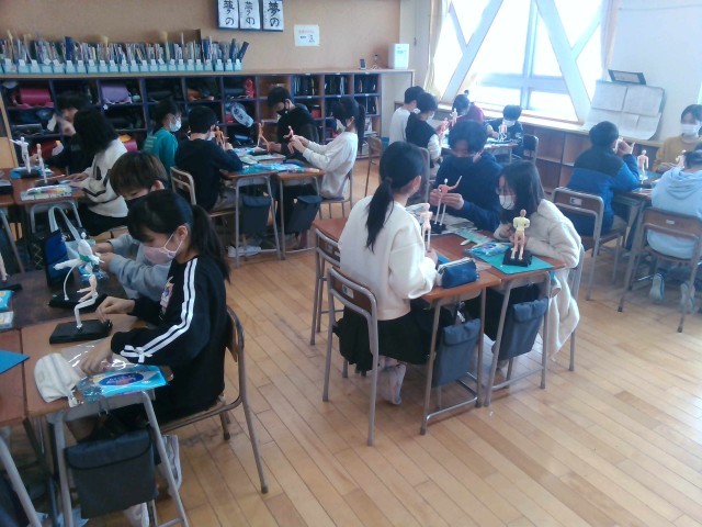 今日は、図画工作科の学習で「未来の自分」を粘土で表しました。姿勢や服装、手の指の動きや顔の表情などにもこだわりながら一生懸命学習に取り組みました。