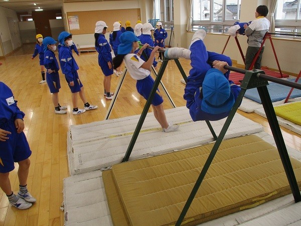 今日はスポーツ指導員の先生方にお越しいただき、逆上がりの練習を行いました。先生方からのアドバイスを参考にしながら練習を重ね、こつをつかむことができました。