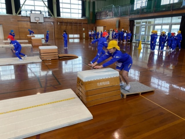 体育科では、今日から跳び箱の学習が始まりました。両手をしっかりつくことや腰を高く上げることを意識しながら取り組む姿が見られました。