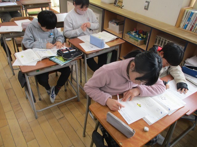 国語科「つながりに気をつけよう」では、相手に伝わりやすい文章を書くことを目標に学習に取り組んでいます。今日は、主語と述語を対応させたり、長い文章を短くしたりするなどの工夫があることを学習しました。より内容が伝わる文章にするにはどこをどのように直せばよいかを、自分が書いた文章を何度も読み、考える子供たちの姿が見られました。