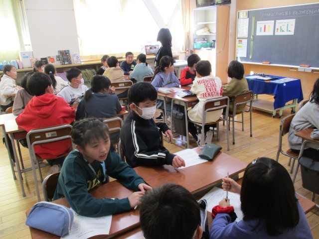 今日は「どうすれば大切な目を守ることができるのか」をテーマに学習しました。子供たちは、日々の生活を振り返り、ゲームの時間が長いことや、テレビを近くで見ていることなどが視力を低下させていることに気が付きました。「目を休めることが大事」「外で遊ぶ時間を増やしたい」等の意見を出し合いながら、視力を低下させないようにするための方法を真剣に考えました。