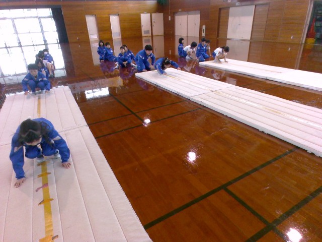 体育科の「マット運動」の学習では、前転と後転に取り組みました。手の位置や足を開きすぎないことを意識しながら、一生懸命に練習する姿が見られました。