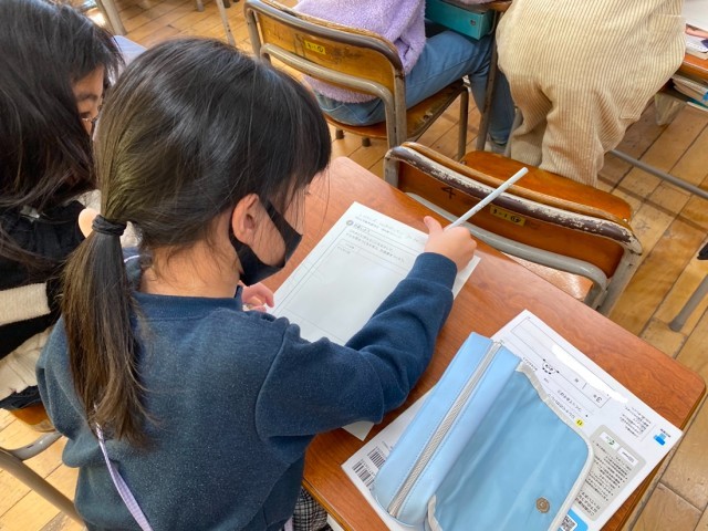今日は、これまでに理科で学習した内容を活用したおもちゃを作るための計画書を作りました。友達と話し合いながらおもちゃの工夫を考える姿が見られました。