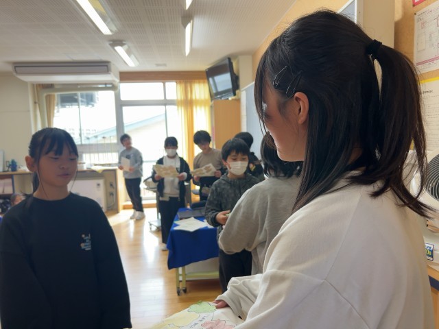 今日のなかよし活動は、卒業お祝いプロジェクトのなかよしチームが企画した活動を行いました。5年生が中心となって進行し、グループで輪になって爆弾ゲームを楽しみました。最後には、6年生にメッセージカードをわたしました。これまでお世話になった6年生のみなさんに、感謝の気持ちを伝える場となりました。