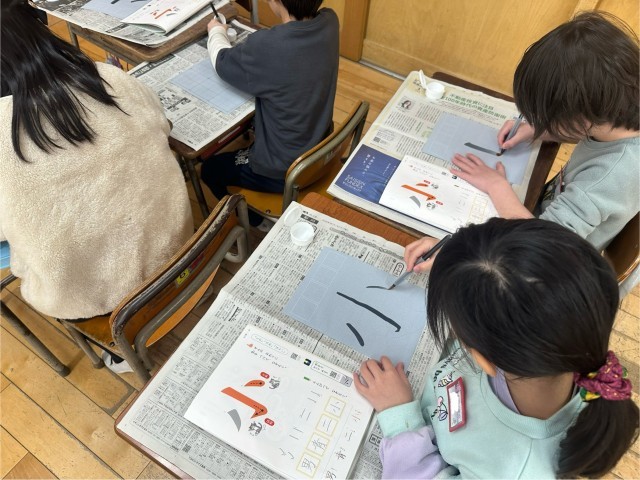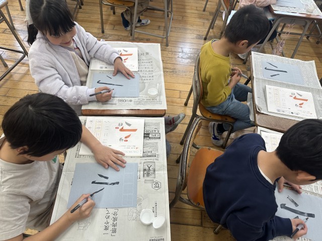 子供たちにとって初めて水筆を使う学習でしたが、お手本を見ながら「とめ、はね、はらい」に気を付けて書くことができました。