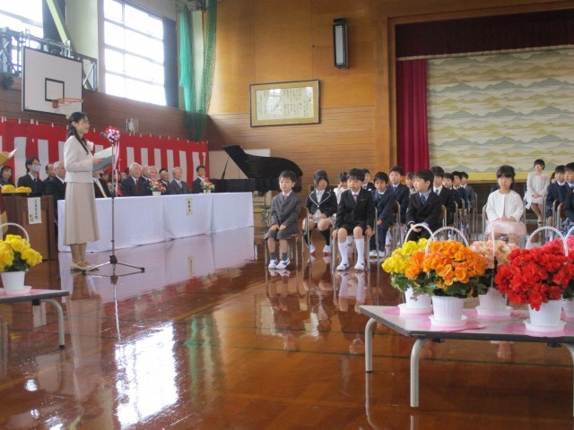 今日から皆さんは奥田小学校の大事な一員です。戸惑うことがあれば何でも相談して、すばらしい仲間たちと一緒に、自分の夢や可能性を大きく広げていってください。