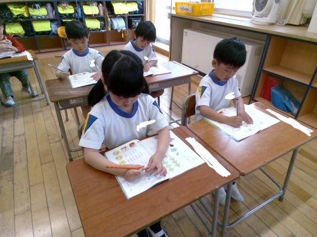 国語科では、字を書くときの姿勢と鉛筆の持ち方の学習をしました。一つ一つ確かめながら課題に取り組む子供たちでした。
