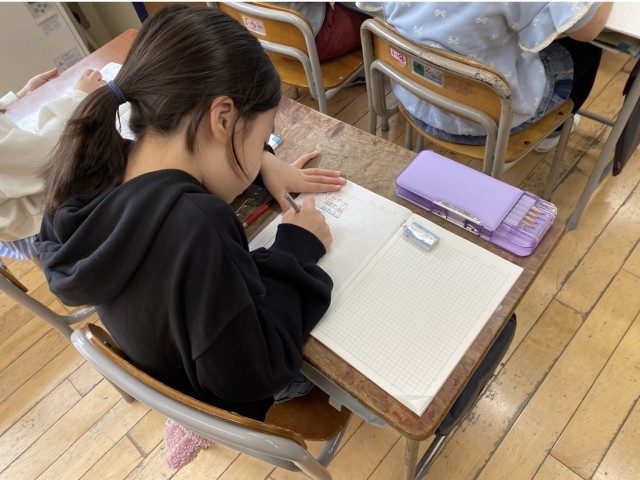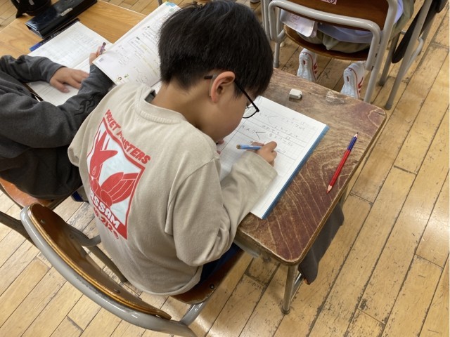 算数科では、「九九を見なおそう」の学習をしています。自分の考えを、図、式、言葉を使ってノートに分かりやすくまとめる姿が見られました。