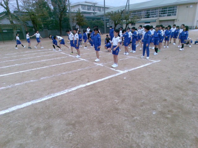 体育科の学習では50メートル走の記録を測りました。スタートの姿勢や、走るときの体の使い方を意識しながら、よい記録を出せるように真剣に走っていました。