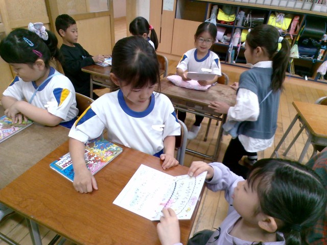 今日は3年生から、今週の金曜日にある入学お祝い集会の招待状をもらいました。招待状をもらい、金曜日の集会をわくわくした気持ちで楽しみにしている子供たちでした。