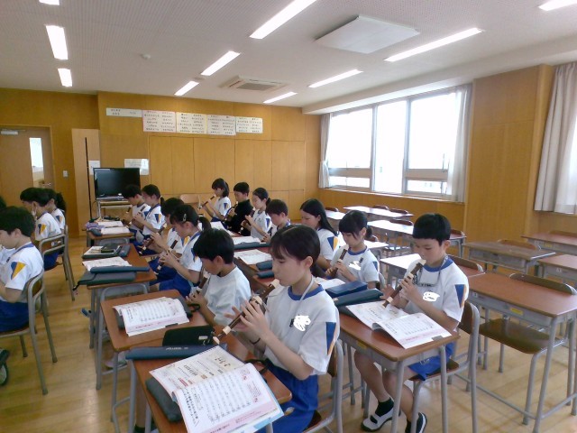 音楽科では、「小さな約束」という曲を学習しています。音の重なりに注意しながらリコーダーを演奏したり、階名で歌ったりしました。よりよい演奏ができるよう繰り返し練習をしている子供たちでした。
