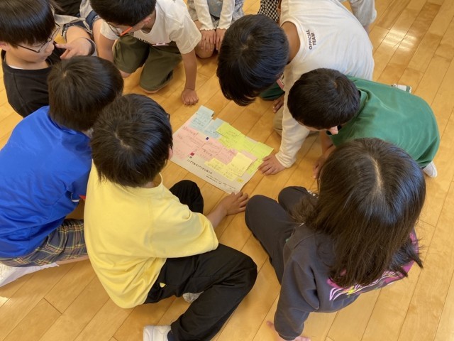 今日は、ペアやグループで出し合った奥田の魅力を学年で紹介し合いました。自分だけでは思いつかなかった魅力に気づき、「もっと魅力を探したい!」という思いをもつ子供たちでした。