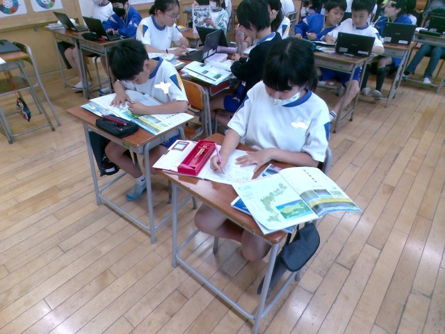 社会科では、国土の地形の特色について学習しました。本やクロームブックを使って調べたり、分かったことを友達と聴き合ったりしながら学ぶ姿が見られました。