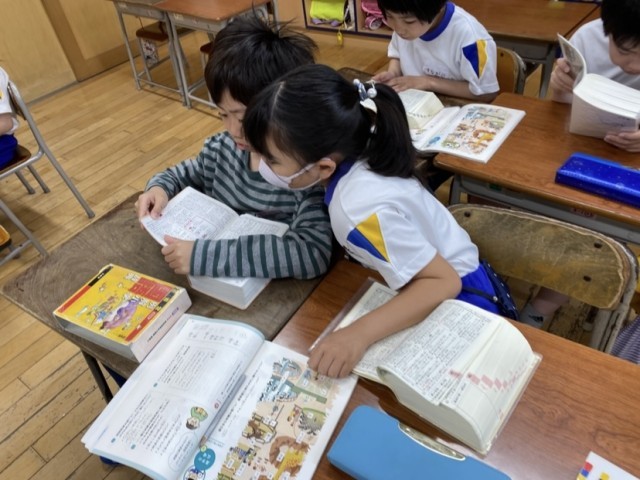今日は「国語辞典を使おう」の学習をしました。色々な言葉を調べ、いくつかある意味のうち、文章に合ったものはどれかを考えました。
