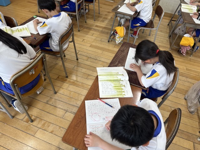 ペアでたくさん聴き合うことで、子供たちは振り返りのノートに想像したことや考えたことをたっぷりと書いています。