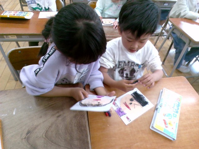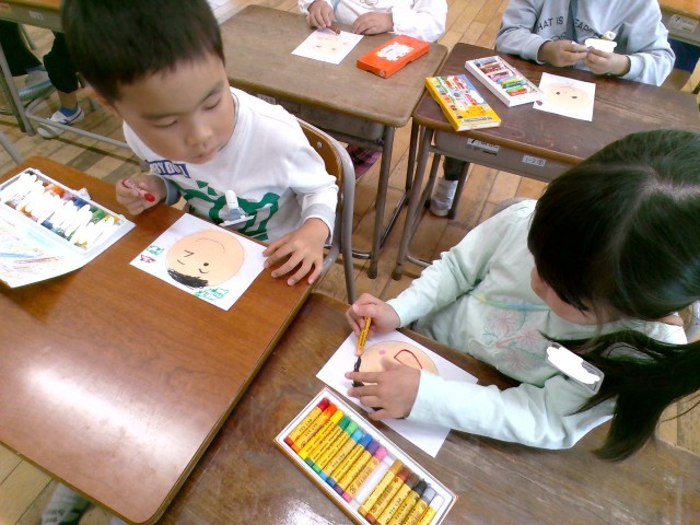 図画工作科では「わくわくなじぶん」をテーマに、自分の顔の絵を描きました。