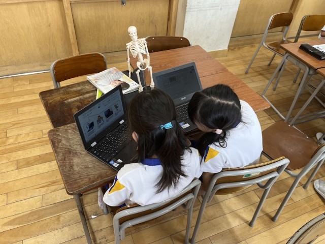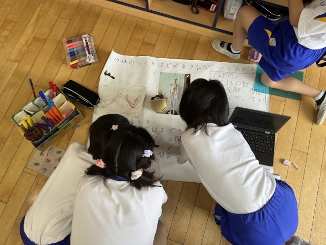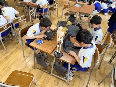 今日は理科の学習で人間のからだのつくりや仕組みについて調べました。子供たちは、本や模型、ウェブサイトなどを活用したり、友達に相談したりしながら、進んで学習に取り組みました。