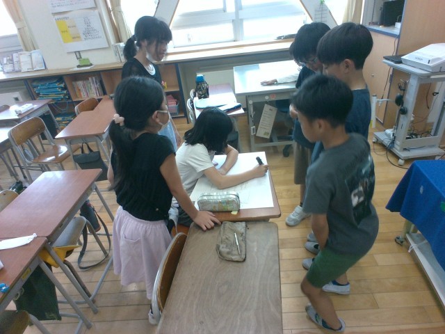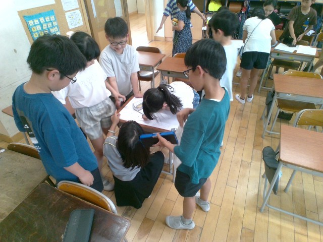 校外学習に向けて班の打ち合わせが進んでいます。自分たちで決めた目当ての掲示物を班ごとに作りました。