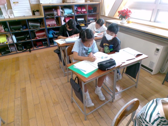 算数科「変わり方を調べよう」の学習では、奥田小学校の階段の段数と床からの高さに比例の関係があるのかを調べました。今までに習ったことを生かして活動をしていました。