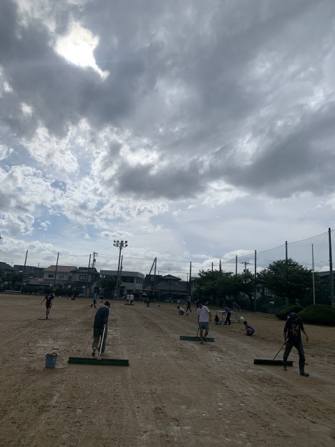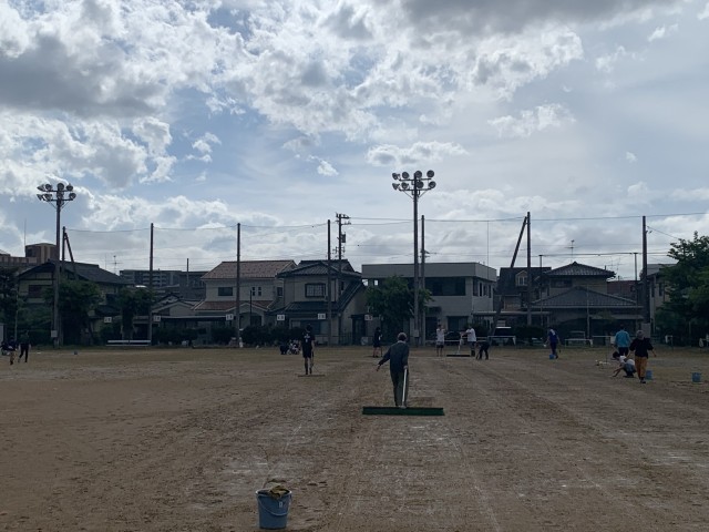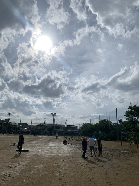 雨があがったグラウンドでは、奥田っ子・PTA・地域の皆様が集まって、水取りをしてくださっていました。