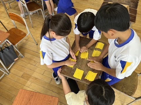 今日の算数科では、あまりのある割り算について学習しました。子供たちは、友達と計算方法を伝え合ったり、具体物を使って視覚的にわり算の仕組みを考えたりしながら理解を深めることができました。