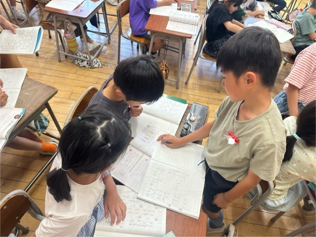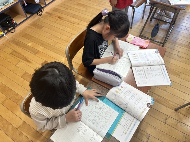 難しい問題に出合い、解き方が分からず困ったときには、友達と協力しながら計算に取り組む姿が見られました。