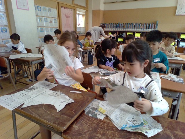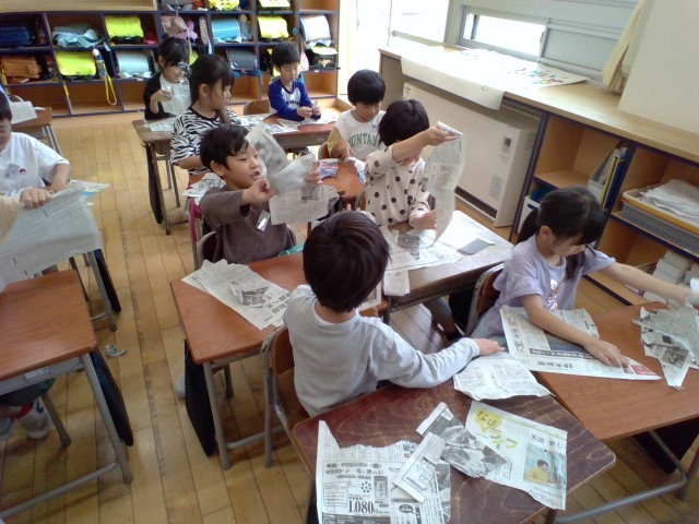 図画工作科の時間に、「やぶいたかたちから うまれたよ」の学習を行いました。楽しく破いたり、ちぎったりした紙の形から思いついたことを表しました。