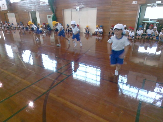 体育科の学習では、シャトルランをしました。昨年の自分の記録を越えようと一生懸命に取り組みました。