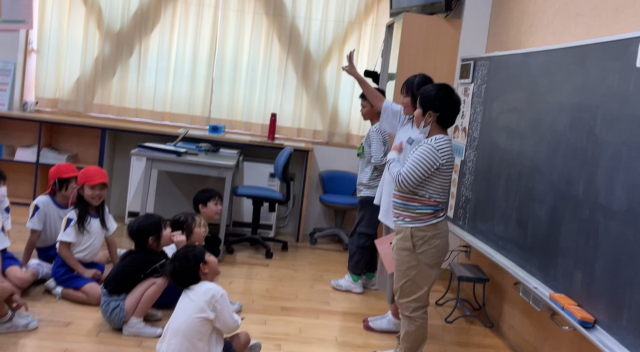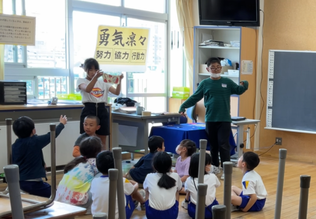 3回目のなかよし活動。「班の友達と協力して、遊びぼう」「名前を呼んで、仲を深めよう」等、班ごとに目当てを決め、どんな遊びなら目当てを達成できるか、考えました。うまくいったことや、困ったことなどを振り返り、次に生かそうとする姿が見られました。
