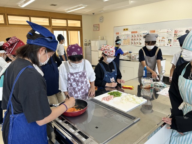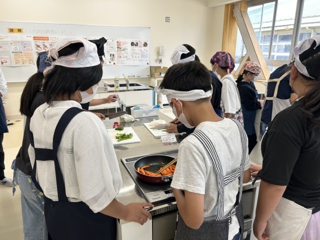 調理実習「いろどり炒め」に取り組みました。食材の切り方や炒め具合を相談しながら、調理に取り組みました。「見た目も味もよくできた」「家でも作ってみようかな」と話すなど、達成感のある楽しい時間となりました。