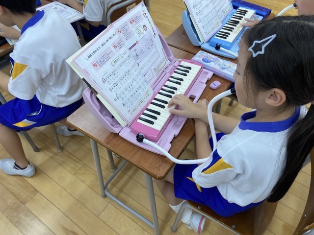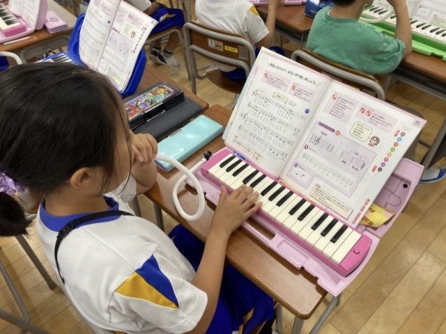 今日は、「海風きって」を歌ったり、鍵盤ハーモニカで演奏したりしました。楽器と合わせて明るい声で歌う様子が見られました。