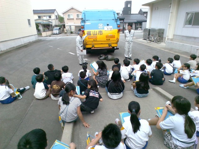 2時間目に3R推進スクールがありました。普段見ることができないごみ収集車の内部を見たり、ごみの正しい分別方法を学んだりするなど、熱心に取り組む子供たちでした。