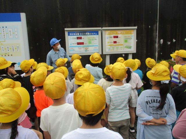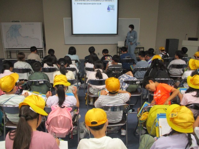 校外学習では、午後に流杉浄水場に行きました。普段使用している水がどのようにきれいになるのか熱心に学びました。