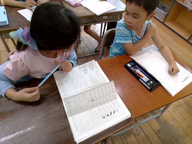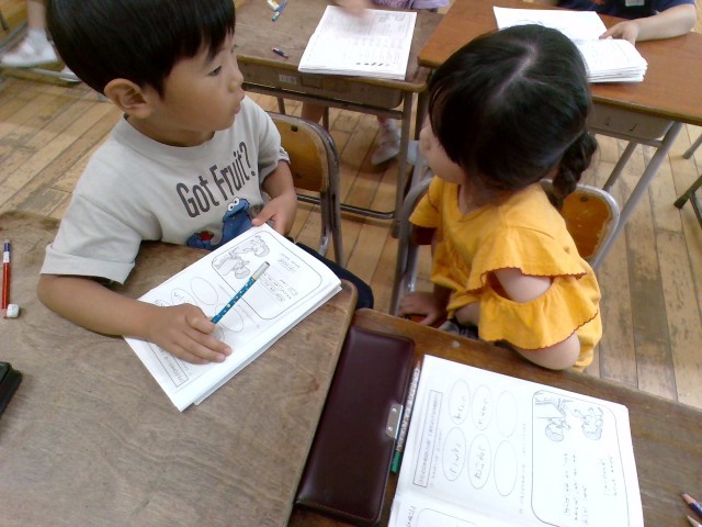 国語科「すきなこと、なあに」の学習では、すきなことをペアさんと話しました。