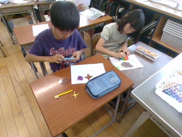 図画工作科「まぼろしの花」では、誰も見たことがないまぼろしの花のイメージを膨らませ、その種を想像して描きました。